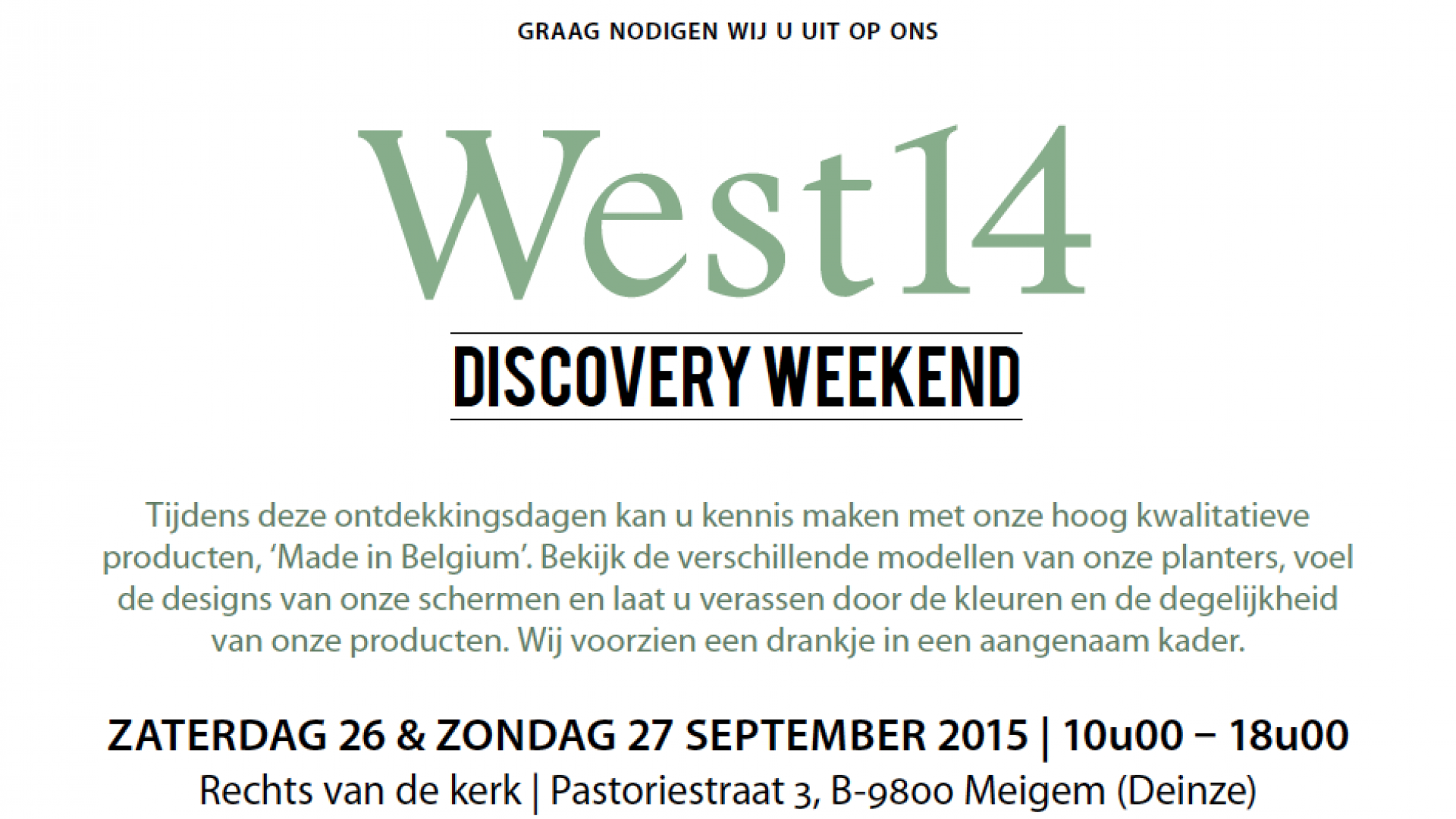 zaterdag en zondag: 10u00 tot 18u00